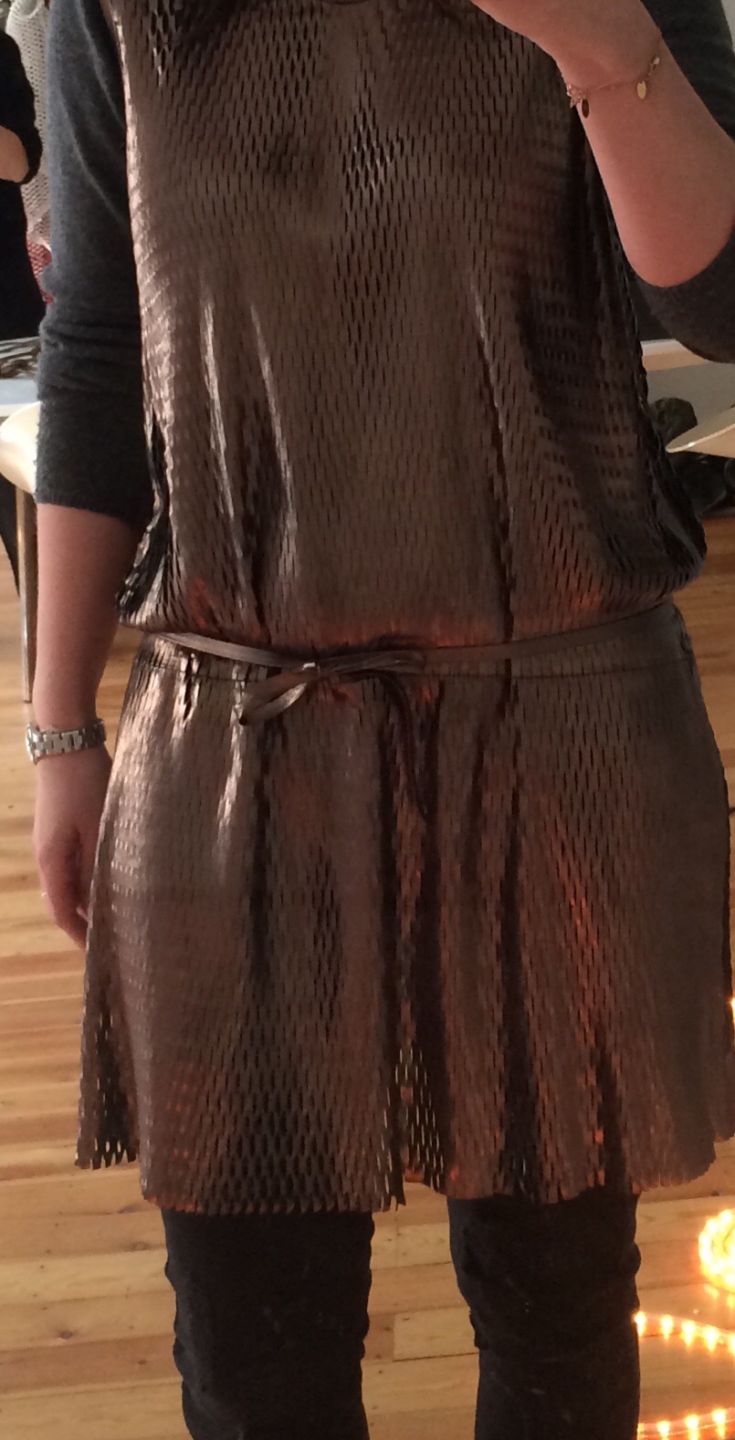 J’ai craqué pour ses écharpes Rock’n Roll et hors du commun mais aussi pour cette robe…en cuir, comme les foulards.
